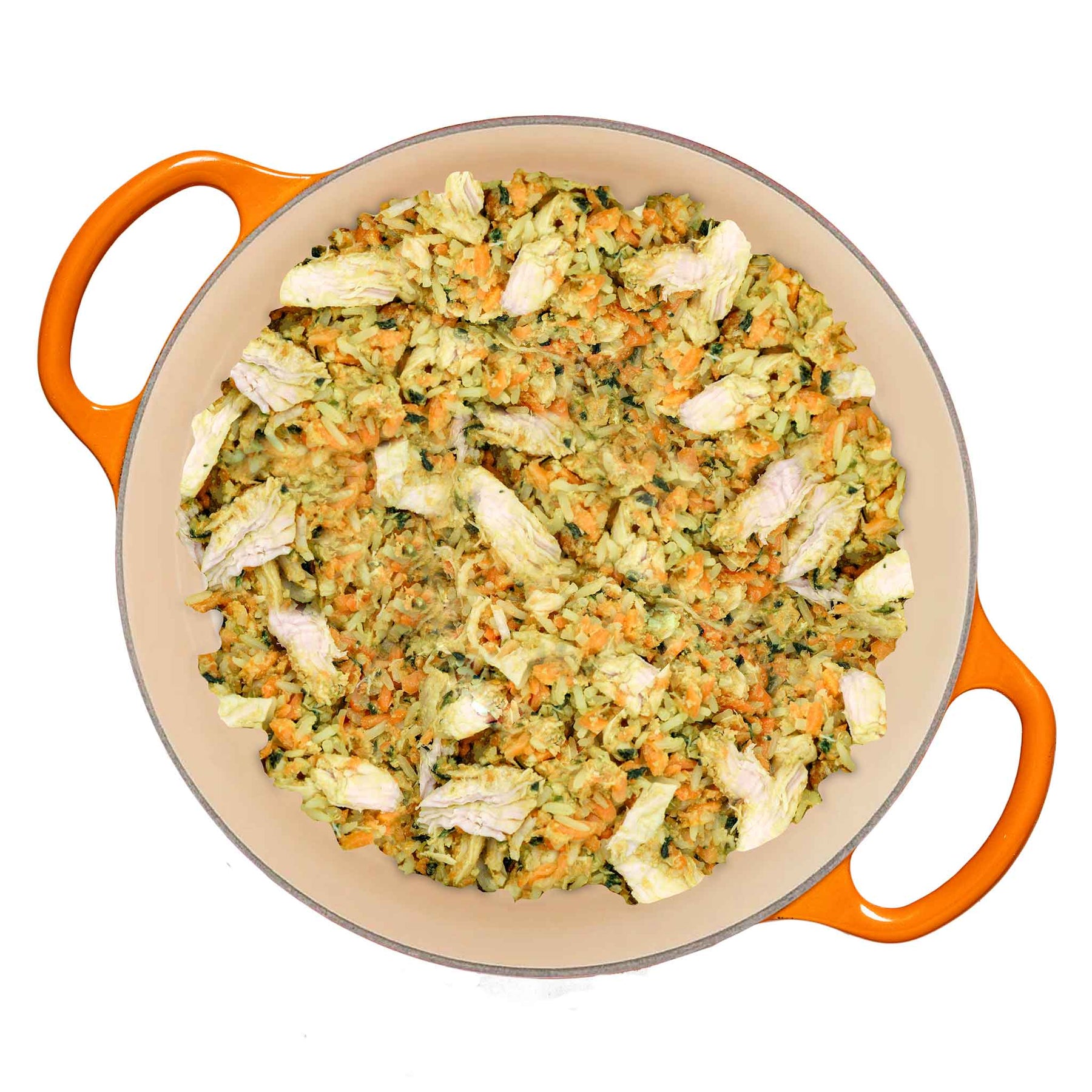 Rice, vegetables, and chunks of real chicken come together in a bowl that captures the essence of coconut chicken curry. It’s a delicious, thoughtfully made meal you can feel good about serving — and one that’s gentle on tummies.