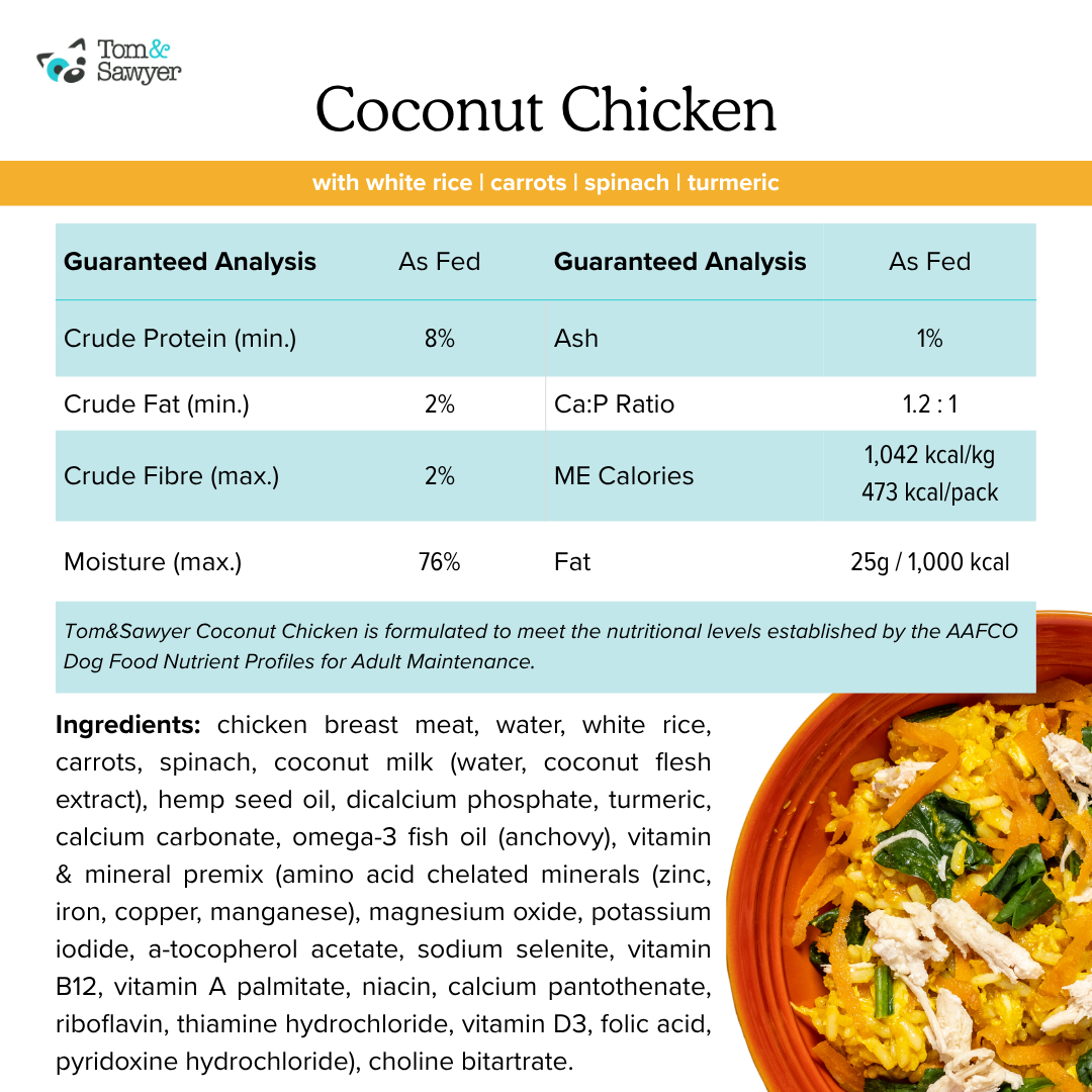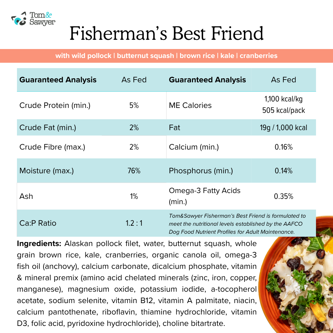 Tom&Sawyer does not claim to provide veterinary medical diagnosis and treatment for the prevention, correction or alleviation of disease, pain, injury or otherwise and provides information only that does not substitute appropriate professional veterinary care. Formulations and/or recipes provided are balanced and prepared in our commercial kitchens. We rely on pet nutrition formulation software, animal nutrition experts, ingredient verification and lab testing from our network of consultants and suppliers to meet the NRC & AAFCO standards for dog and cat nutrition.