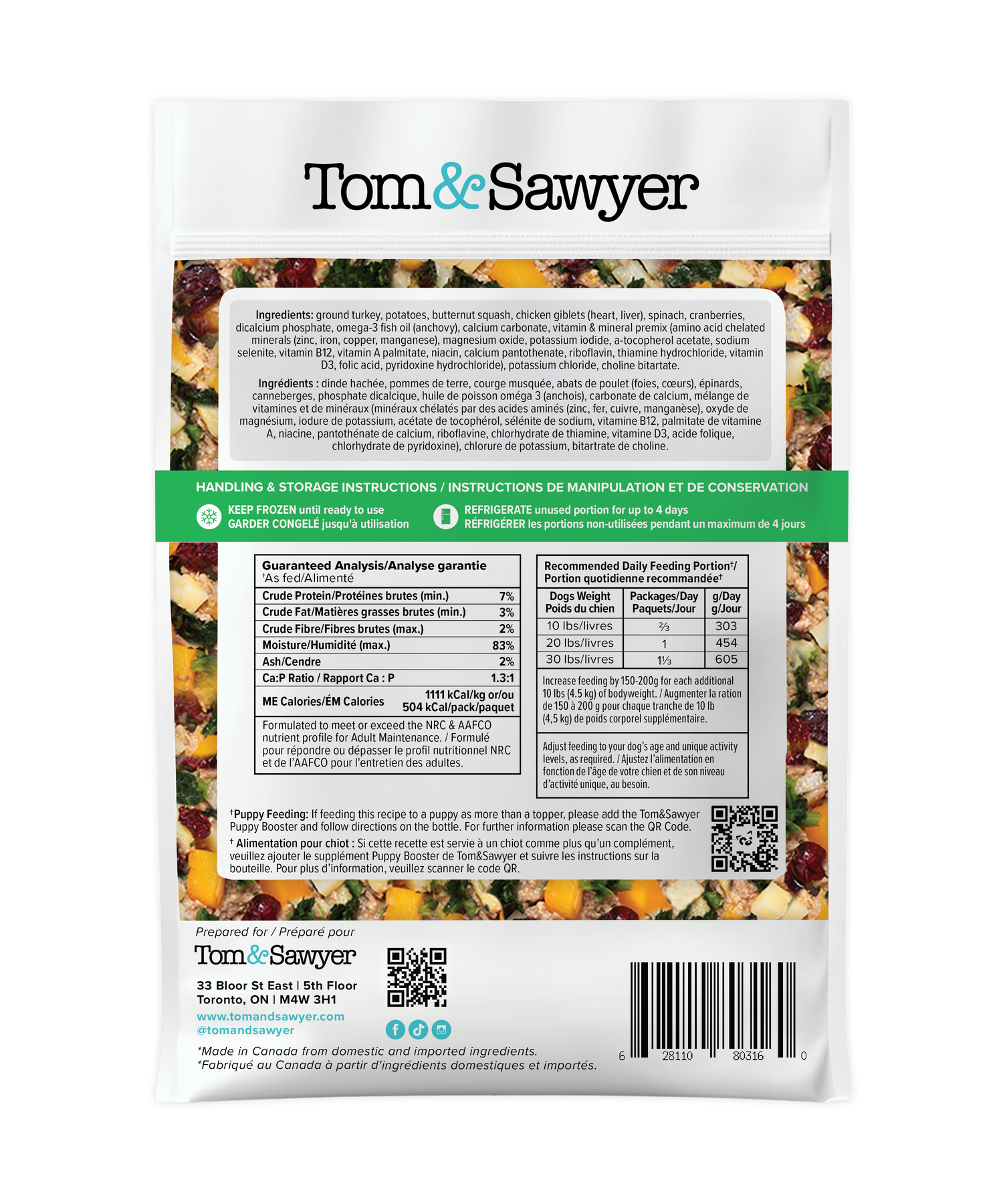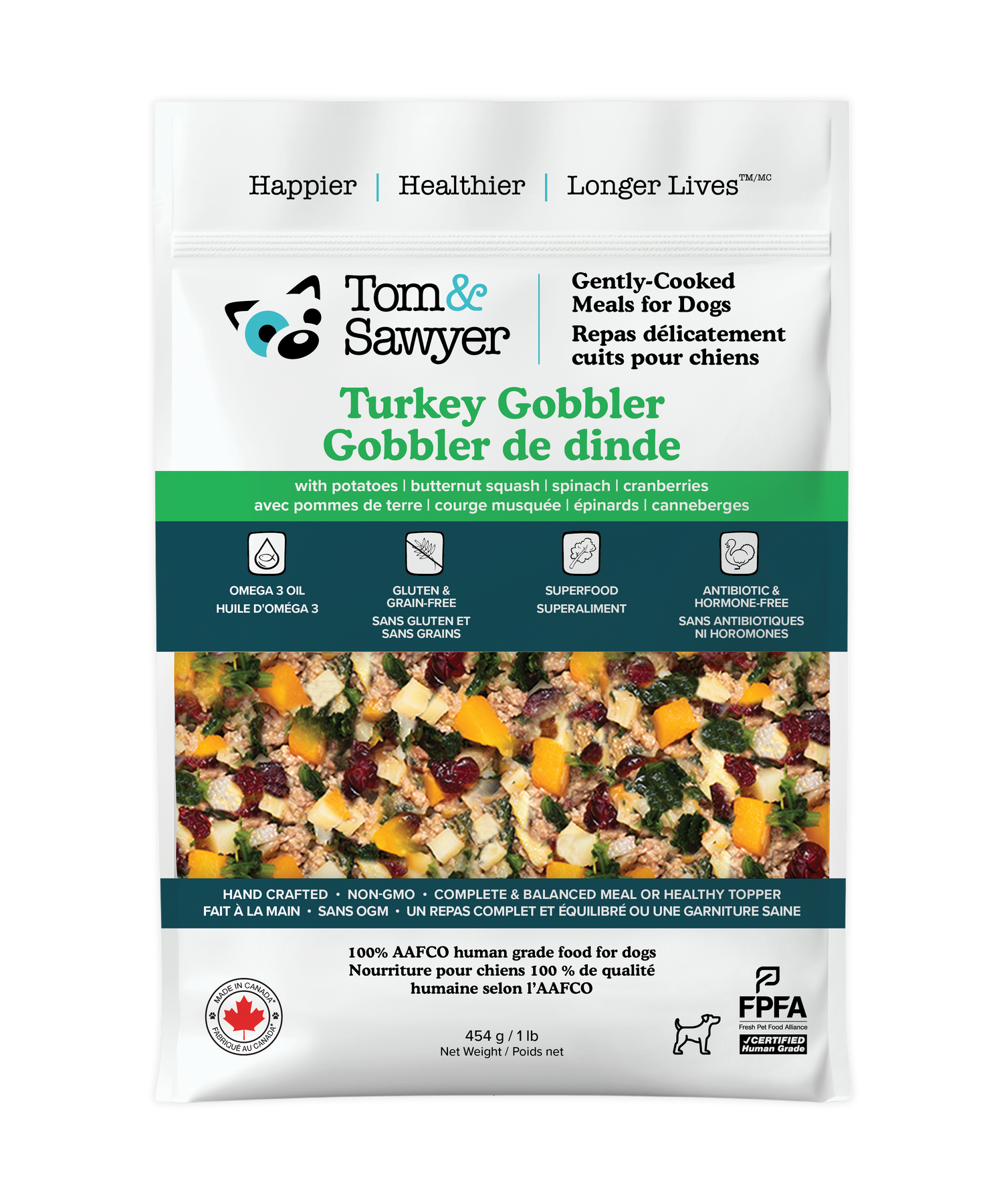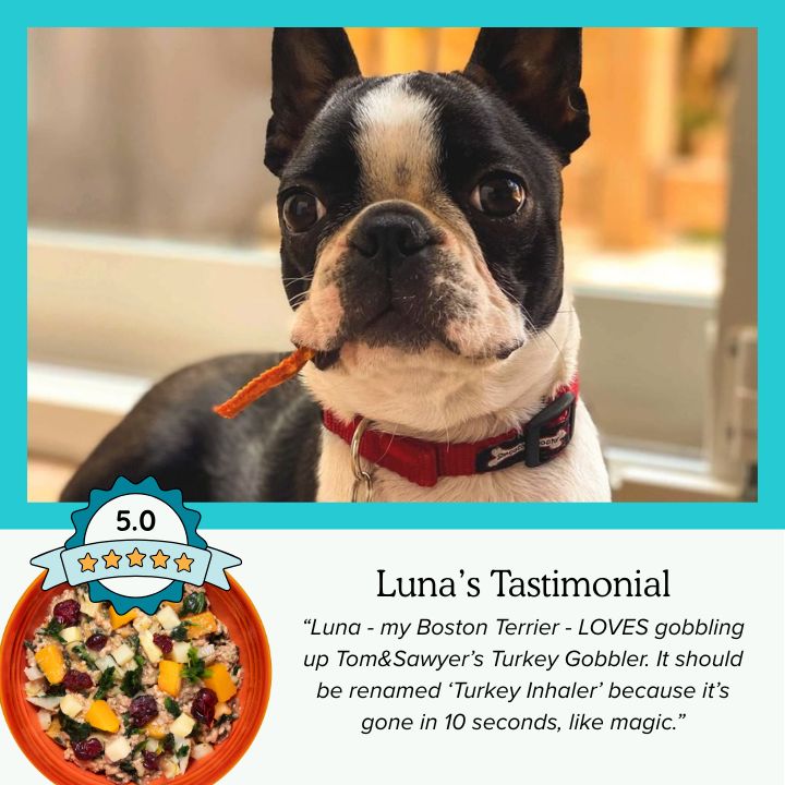 Do you like to sneak your pup a taste or two from your plate at dinner time? Now you don’t have to! This recipe takes elements of a traditional festive dinner, with ground turkey meat and chicken giblets (liver and heart), complemented by a tasty medley of butternut squash, russet potatoes and spinach. Just add the cranberries [which we did], and your dog can enjoy a meal that's reminiscent of the holidays, all year round.